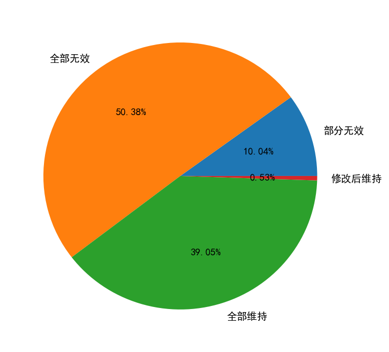 需要指出的是,2018年的数据目前看起来较少,很可能是因为还存在很多尚未完结的案件,因此不能简单地认为2018年的无效请求数量下降。